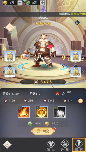 4、奥恩:前排火属性输出战士,其强大的地方不在于伤害,而在于可以为友军提供伤害增幅。