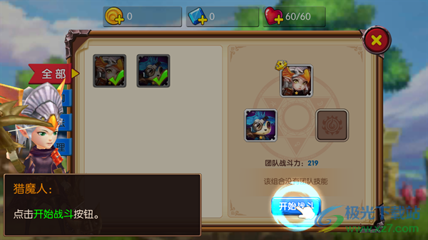 4、合理安排自己的阵容,点击右下角的“开始战斗”。