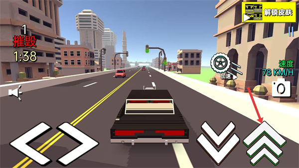 3、进入【摧毁】模式的游玩界面,关注当前【速度-78-KM/H】,通过界面操作按钮控制车辆,推进游戏进度。
