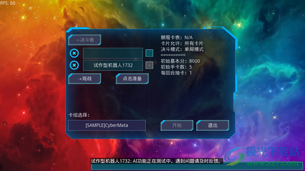 3、自定义选择卡组的类型,点击准备以后即可开始。