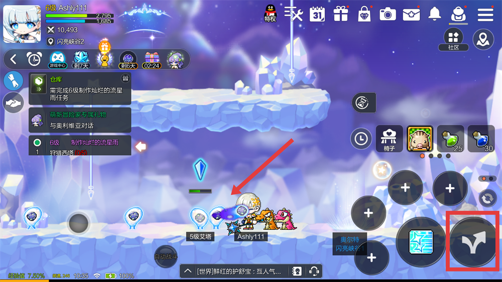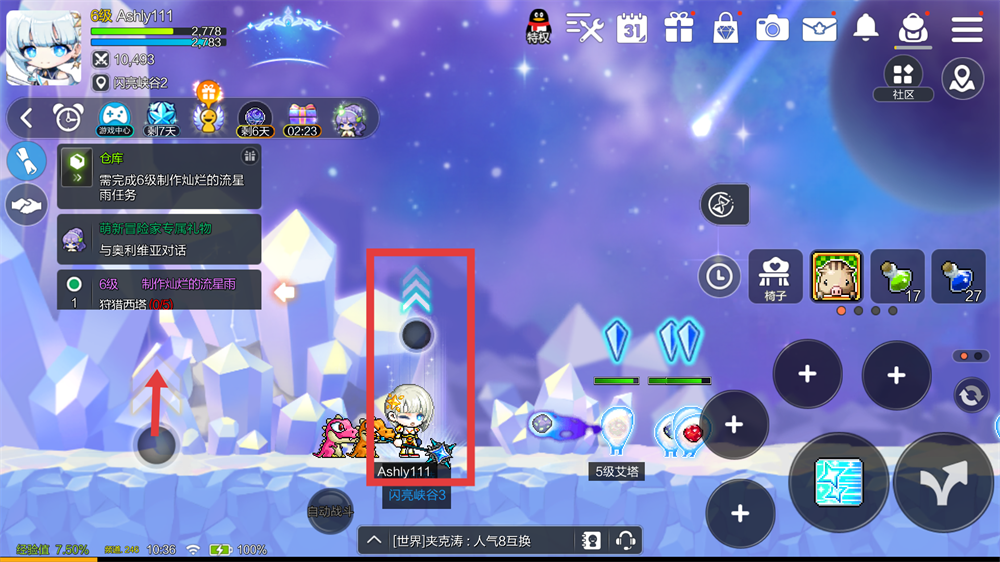 4、到了传送阵附近,向上滑动移动轮盘,就能传送到指定地点,这样才能推进跑图哦。