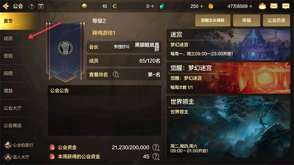 1、在游戏界面点击【公会】,进入公会系统界面。