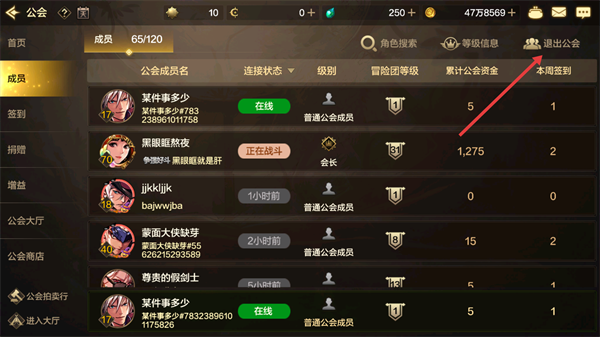 3、点击【退出公会】按钮,触发退出提示弹窗。