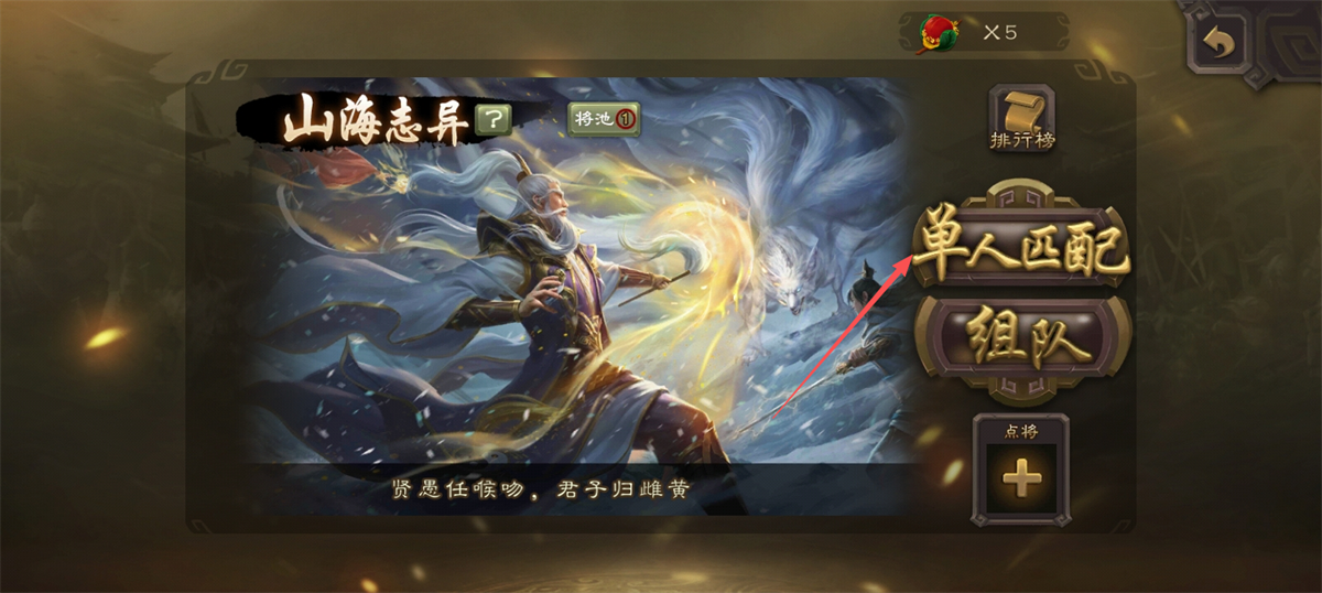 1、进入游戏后点击【单人匹配】,开启山海志异模式的策略对战,体验独特卡牌对决乐趣呀。