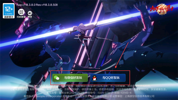 4、在登录选择界面,可选择【与微信好友玩】或【与QQ好友玩】,选择后登录新账号。