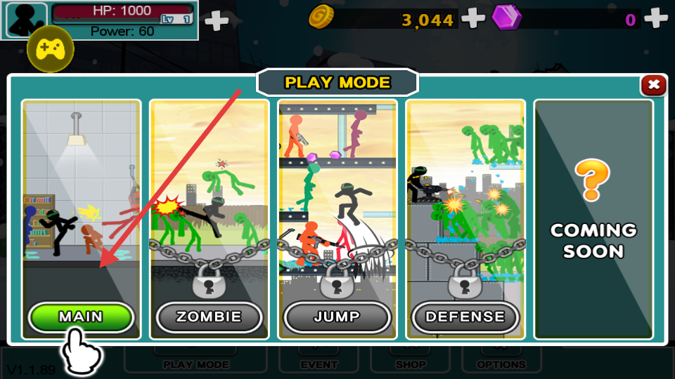 2、在游戏模式选择界面,选择“MAIN”主模式开始游戏,体验多样玩法。