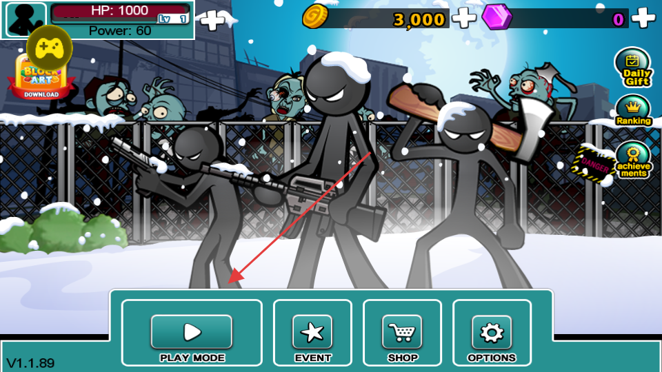 2、在主界面中,点击“PLAYMODE”进入游戏模式选择界面,可选择不同模式开启战斗。