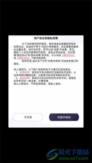 1、打开游戏后需要先同意用户协议和隐私政策。