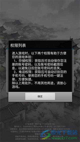 2、想要完整的游戏体验需要开启电话和存储权限。