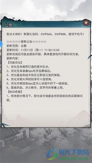 4、实名认证成功后可以看到游戏的公告,将公告关掉即可开始游戏。