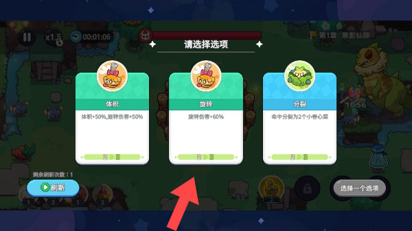 2、进入关卡会出现boss,我们需要先选择技能或者属性。