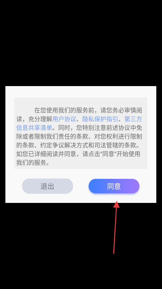 1、点击【同意】,确认服务协议,进入游戏流程。