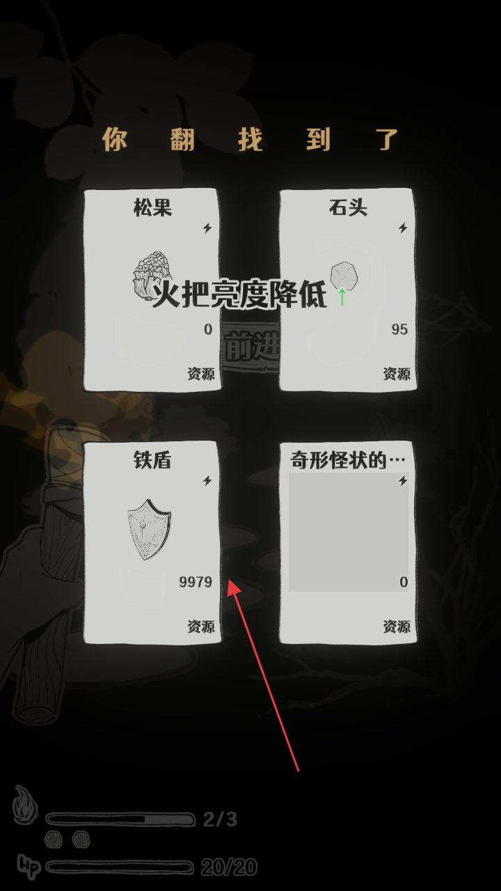 3、翻找后,点击获取“铁盾”,积累资源,提升生存能力。