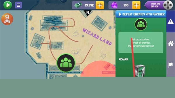 1、在地图界面找到DEFEAT ENEMIES WITH PARTNER任务,点击START开启。