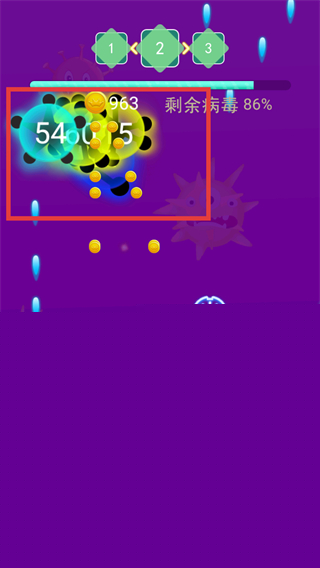 1、对抗病毒时优先收集【金币】,积累分数并降低【剩余病毒】百分比,稳步推进关卡进度。