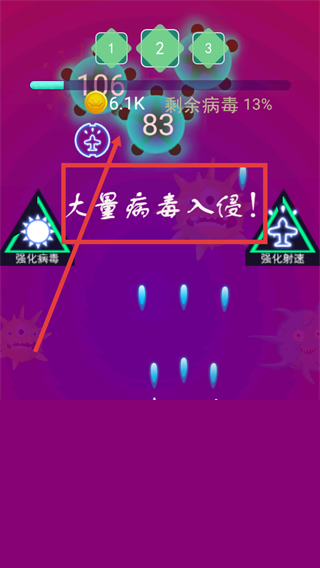 3、出现【大量病毒入侵】提示时,选择强化射速增强火力,更高效应对集中攻势。