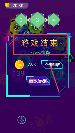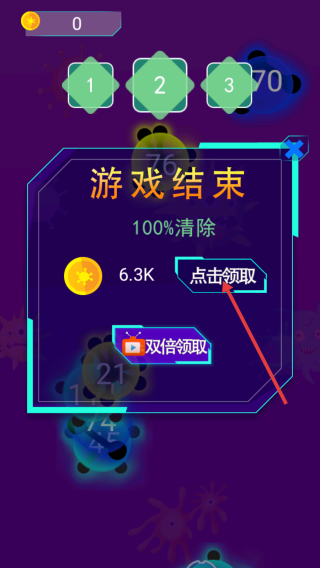 3、游戏结束后,点击【点击领取】或【双倍领取】按钮获取奖励。