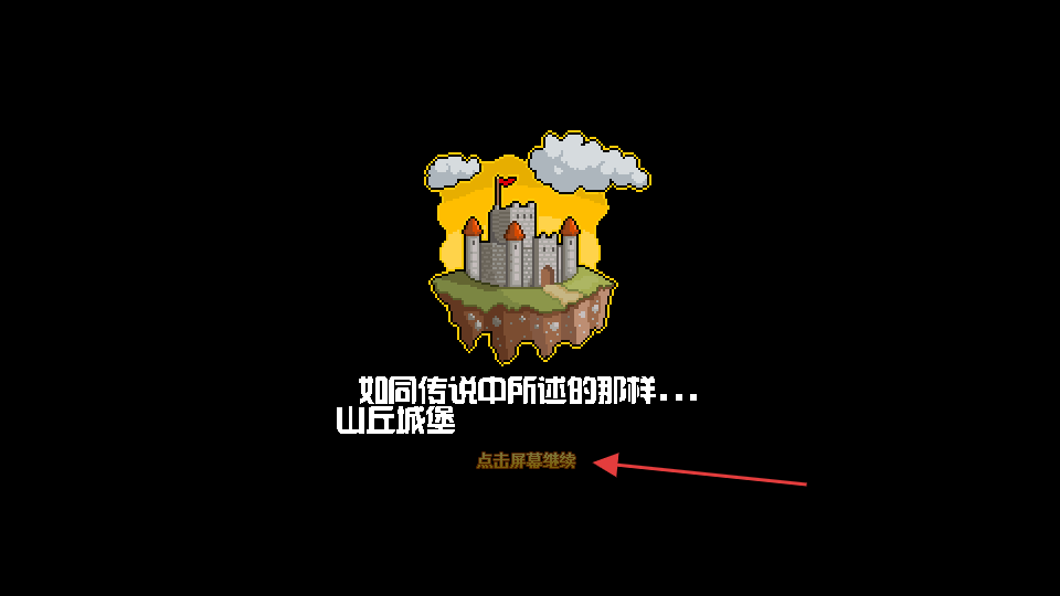 2、剧情介绍阶段,依次点击“点击屏幕继续”,了解山丘城堡与邪恶巨龙的背景故事。