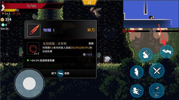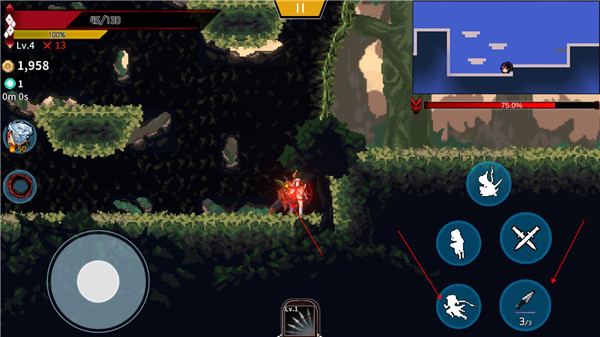 2、在游戏关卡中,通过左下角的虚拟摇杆控制角色移动,利用右侧技能按钮释放技能,与敌人战斗并探索地图。