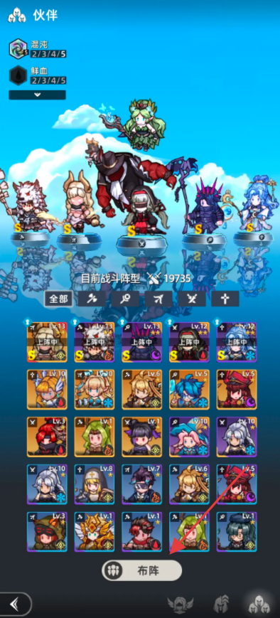 1、在伙伴界面,点击【布阵】按钮,可调整战斗阵容,合理安排伙伴位置,提升战斗实力。