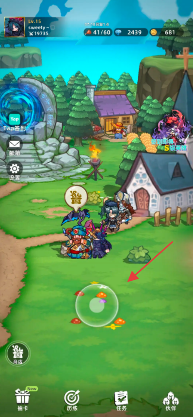 2、在游戏主场景界面,点击屏幕上的交互点(如箭头所指处),可能触发相关剧情、任务或获得奖励。
