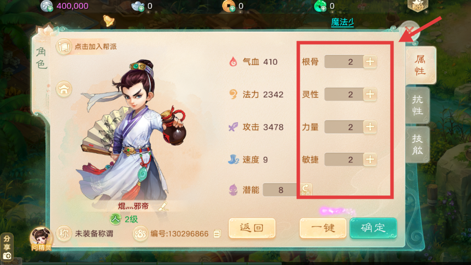 3、对根骨、灵性、力量、敏捷等属性进行加点调整。