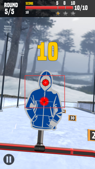 2、瞄准人形靶心,完成射击并击中靶心即可通关。