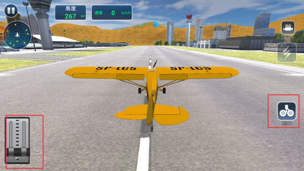 3、驾驶时左侧控油门加速,右侧【刹车】按钮减速,把控飞机起降与飞行。
