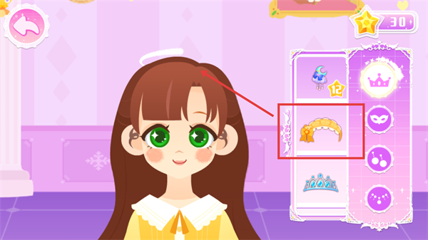 2、在装扮界面,选择右侧的【头饰】装饰部件搭配角色。