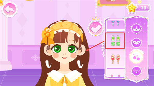 3、装扮界面中,选择右侧的【耳环】装饰部件来搭配角色形象,完善装扮细节,契合整体造型风格。