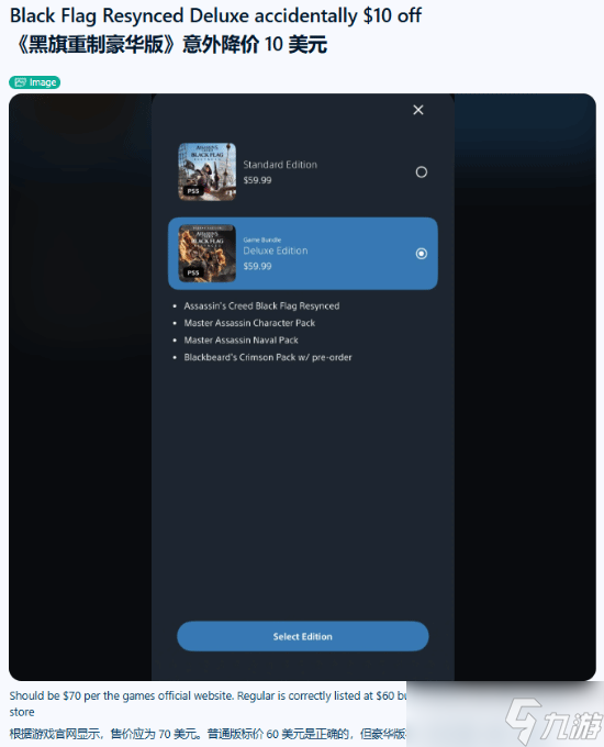 刺客信条 黑旗记忆重置版现价格异常,豪华版短时直降10美元引热议