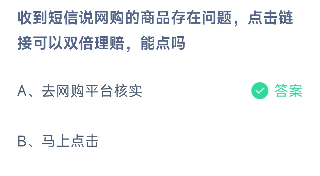 收到短信说网购商品可双倍理赔,能点吗-蚂蚁庄园10.21日答案