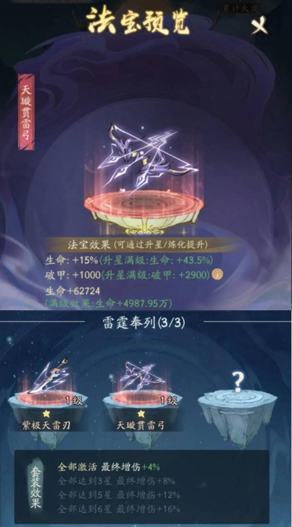 寻道大千天璇贯雷弓法宝氪金各档位奖励一览